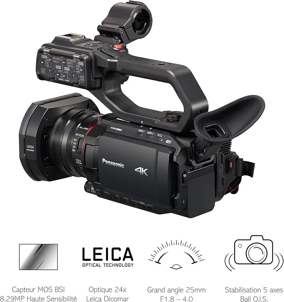 Panasonic X2000 | Caméscope Semi-Pro 4K (4K 60p, Zoom Optique Leica 24x, 25mm, Stabilisé, Viseur, Enreg. interne 4:2:2 10bit 4Kj, Live Streaming FHD, Torche LED, 2 Prises XLR)